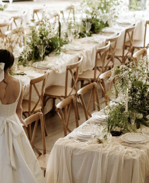 Tables: Tables are calculated at 4 per side, excluding the bridal tables which are one-sided.